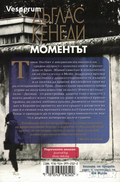"Моментът" е разтърсващ разказ за приятелство и предателство, за драмата на личния избор, за неведомите пътища на чувствата. Действието ни отнася в Берлин, в тягостните години преди падането на Стената. Томас Несбит е писател, който живее уединено, контактува единствено с двайсетгодишната си дъщеря и се опитва да преглътне края на дългогодишния си брак. Докато една мразовита сутрин не получава известие за колет от Дусман - загадъчна жена, белязала миналото му с ефимерна, но страстна любовна афера.