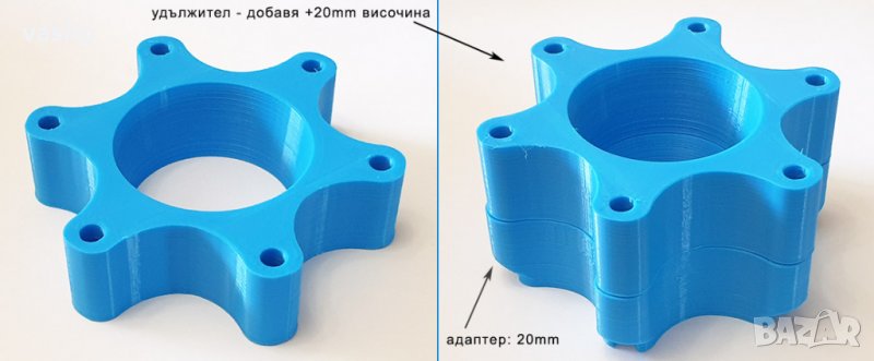 Удължител за фланеца (на пред-последната снимка) -> добавя още 20мм към него и стават заедно общо 40мм.