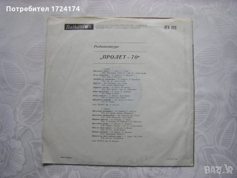 Грамофонна плоча - ВТА 1178 - Радиоконкурс Пролет 70