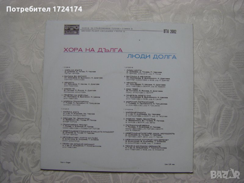Грамофонна плоча - ВТА 2082 - Хора на дълга