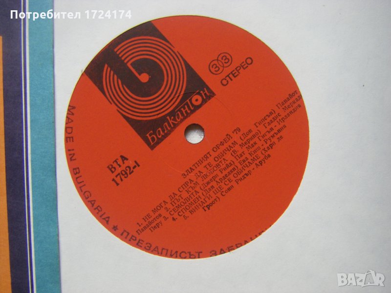 Грамофонна плоча - ВТА 1792 - Златният Орфей - 79