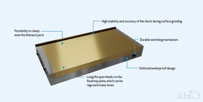 сила на задържане. Съчетава високо качество и ниска поддръжка . Подходящ е като за шлайфмашини така и за фрезови машини . Благодарение на