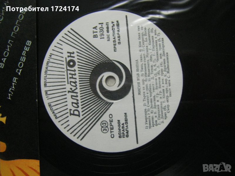 Грамофонна плоча - ВТА 1930 - Ал. Йосифов, К. Драгнев. "Мисия във Виена", мюзикъл