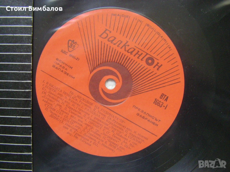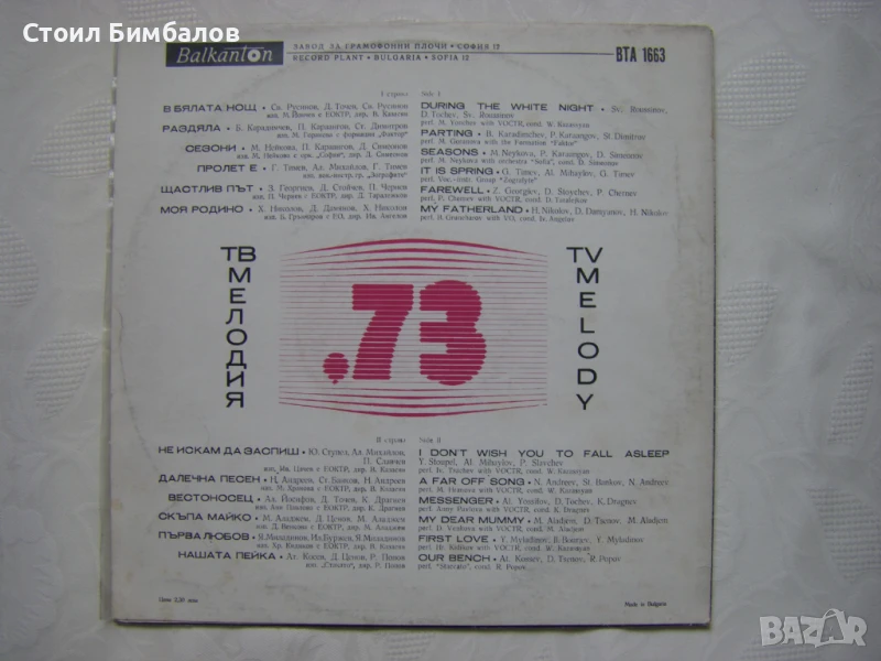 Грамофонна плоча - ВТА 1663 - Българска телевизия. Мелодия 73