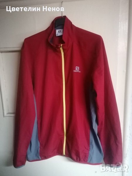 Salomon. Размер Л, без забележки. Висок клас яке, много качествена изработка и хубава материя, предпазва от вятър и дъжд, CLIMAWIND технология. Уникален нов спортен модел, . На гърдите емблемата на Salomon. Отпред е с цип, разполага с джобове за ръцете с ципове. В основата и в края на ръкавите е ластик. Оригинален продукт на водеща световна марка за спортна, туристическа екипировка. Водонепромокаемо и ветроустойчиво яке. Подходящо за есента , за спорт, туризъм, планина и за всеки ден.