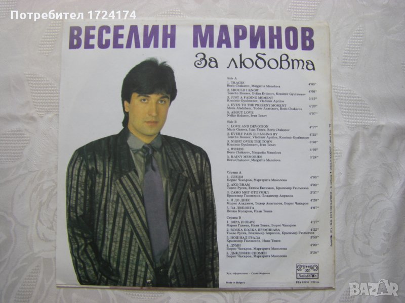 Грамофонна плоча - ВТА 12636 - Веселин Маринов.За любовта