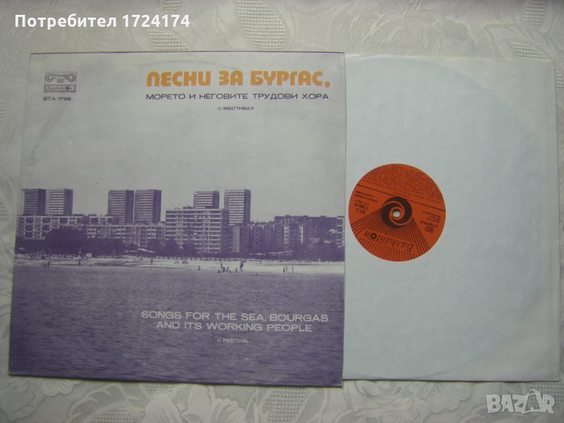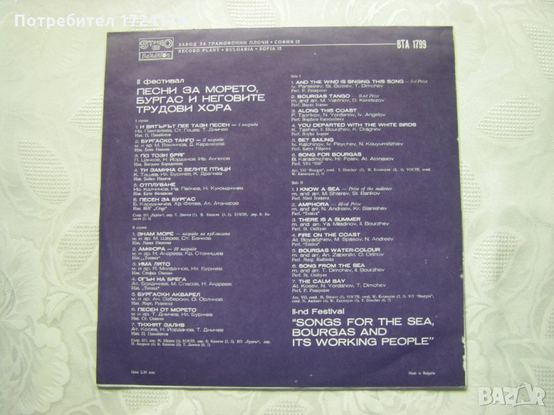Грамофонна плоча - ВТА 1799 - II фестивал "Песни за Бургас, морето и неговите трудови хора"