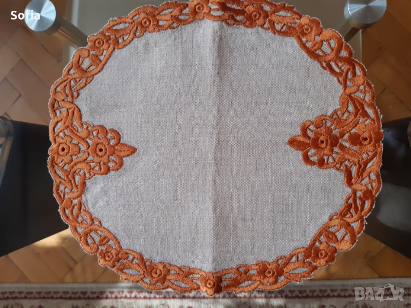 3.Декоративна овална покривка с рязана бродерия бордюр