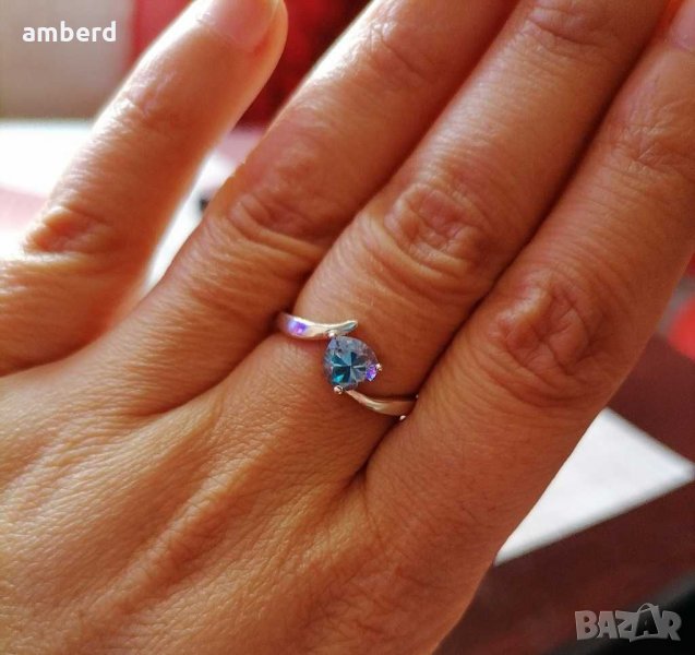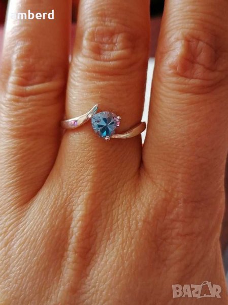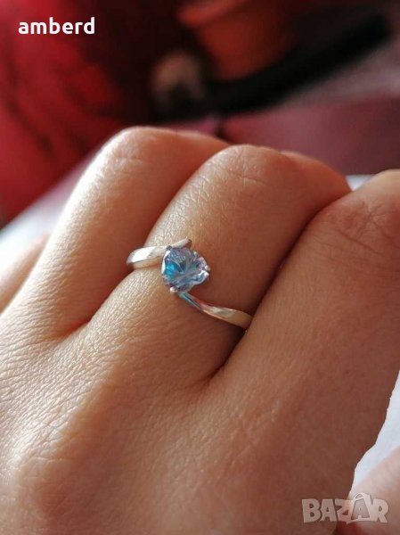 сребро проба 925 и цирконий сърце в светлосин цвят. Вътрешен диаметър 18мм.
