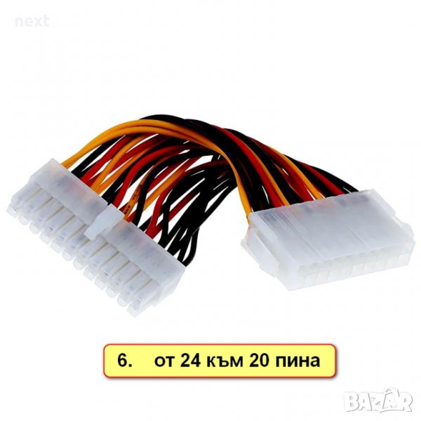 - Номер 6. от 24 към 20 пина - с този преходник може да свържете конектор на по-стар тип захранване (20-пиново) към по-нов тип дънна платка (24-пинова).