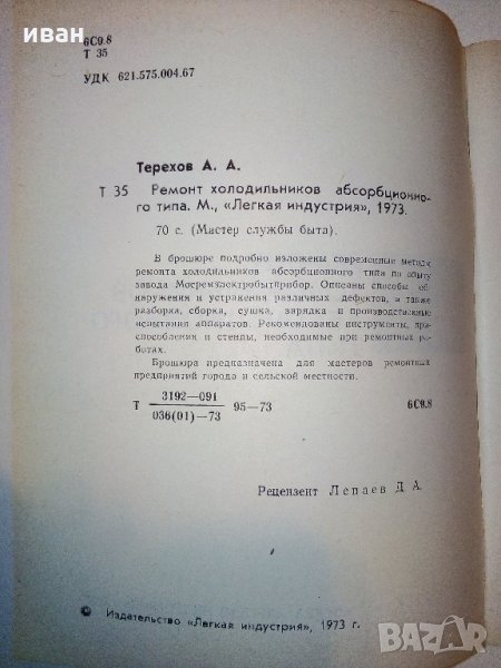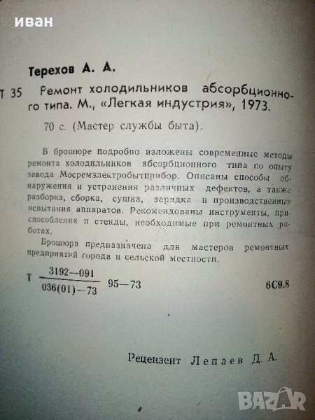 Ремонт холодильников абсорбационного типа - А.Терехов - 1973 г.. → Обява 31528936