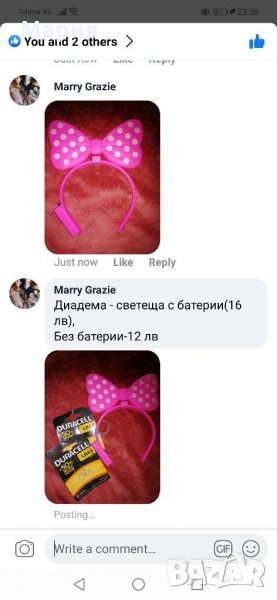 -с включени батерии 3бр duracell, нови - 16 лв +ПОДАРЪК още една диадема черна с ушички.