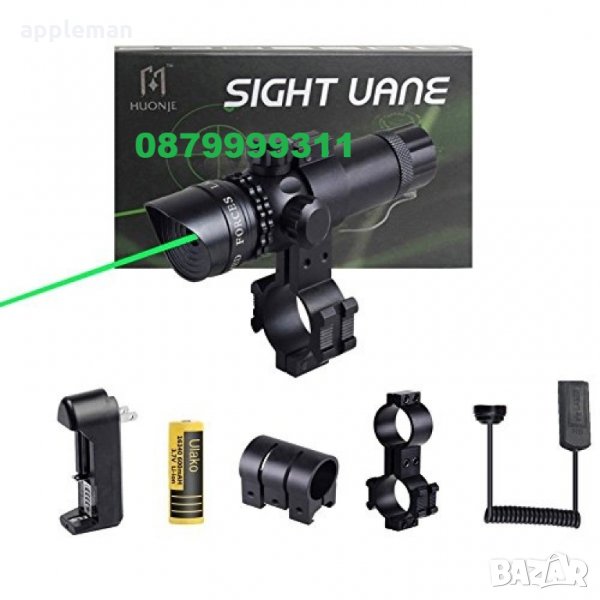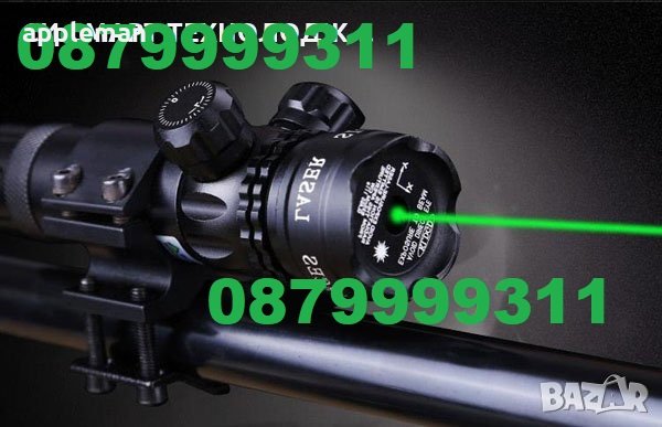 Мощен лазерен прицел за оръжие с непрекъснат, силен, интензивен зелен лъч- видим с невъоръжено око дори и през деня с работно разстояние до 500м и през нощта на разстояние около 2000м.