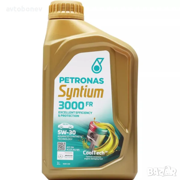 PETRONAS SYNTIUM 3000 FR е напълно синтетично двигателно масло произведено с технологии разработени за Формула 1 специално за съвременните бензинови и дизелови двигатели на FORD. Премиум моторно масло, произведено от най-висок клас базови масла и последно поколение присадки, което се използва във Формула 1. Уникалната технология °CoolTech™ осигурява надежден поток на маслото при екстремно високи температури, там където двигателя е най-натоварен. Специалните присадки гарантират устойчиво смазване при най-натоварените компоненти на двигателя, като отвеждат топлината. Свойствата му спомагат за оптимизиране работата на двигателя и намаляване на разхода на гориво. Притежава висока степен на защита както при ниски така и при високи температури. Осигурява ниско количество на отлагания в изпускателната система.
