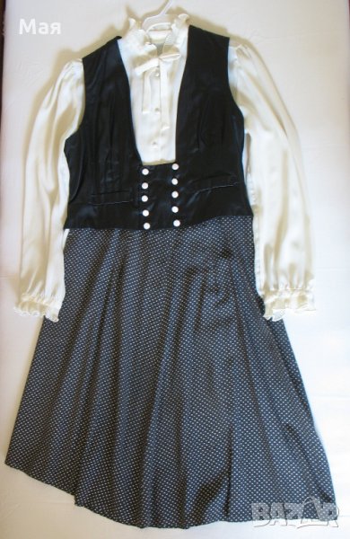 Полата и блузата са от естествена коприна на точки (черна пола на бели точки и бяла блуза на черни точки)