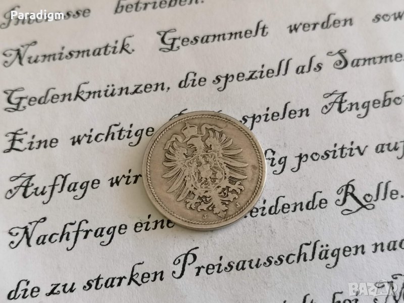 Монета - 10 пфенига от 1876г.; серия J