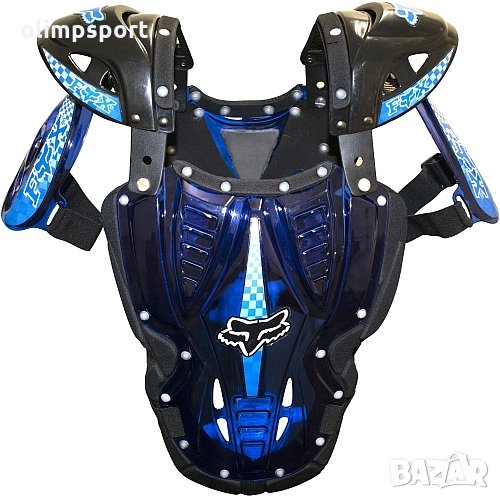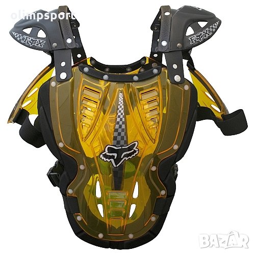 Ризница мото прозрачна FOX. Един размер, който дава възможност за регулиране при раменете, лактите и на кръста. Предпазва от удари на гърба по цялата дължина на гръбнака, гърдите, раменете, лактите. Изработена е от удароустойчиви материали. Изключително лека и анатомично оформена. Подходяща за мотоциклетисти, колоездачи, сноубордисти, скиори, скейтбордисти. Различни цветове. Тегло 1.2кг. 111лв