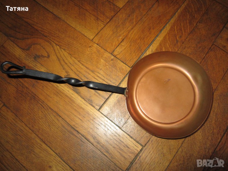 Медно тиганче/диаметър 15 и обща дължина 33см/.Дръжката е от ковано желязо.Цена -32 € Снимка 15-16