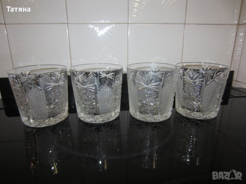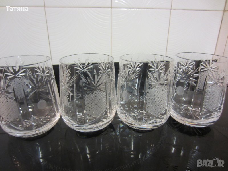 Оловен български кристал/фин кристал с тежко дъно,ръчно гравирани,24%олово;много стара серия/вече не се произвеждат/.
