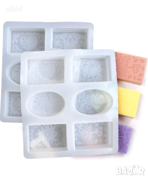 6 декорирани правоъгълник и овал дълбок калъп силиконов молд форма за фондан гипс сапун → Обява 31542944