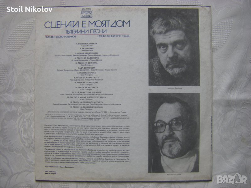Грамофонна плоча - ВТА 11802 - Недялко Йорданов. Сцената е моят дом. Театрални песни