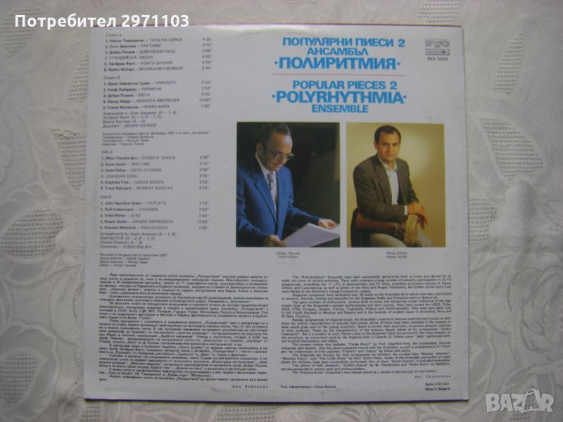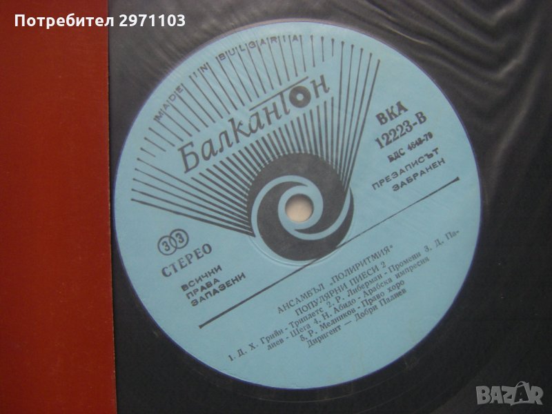 Грамофонна плоча - ВКА 12223 - Ансамбъл Полиритмия - популярни пиеси 2