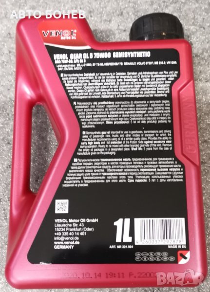 VENOL 75W-80 GL-5 е трансмисионно масло, произведено чрез употребата на полусинтетични масла, което е предназначено за употреба в механични трансмисии, зъбните колела на задната ос, и други автомобилни трансмисии. Може да бъде смесено с други марки масла.