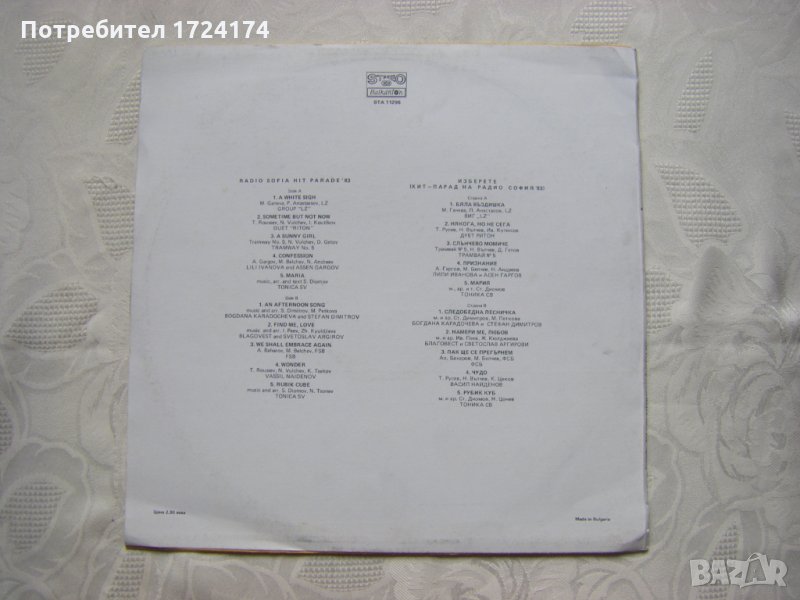 Грамофонна плоча - ВТА 11296 - Изберете. Хит - парад на радио София '83