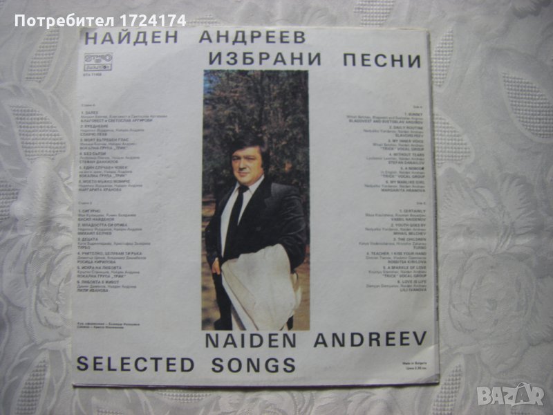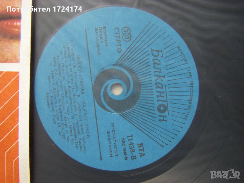 Грамофонна плоча - ВТА 11458 - Избрани песни. Найден Андреев