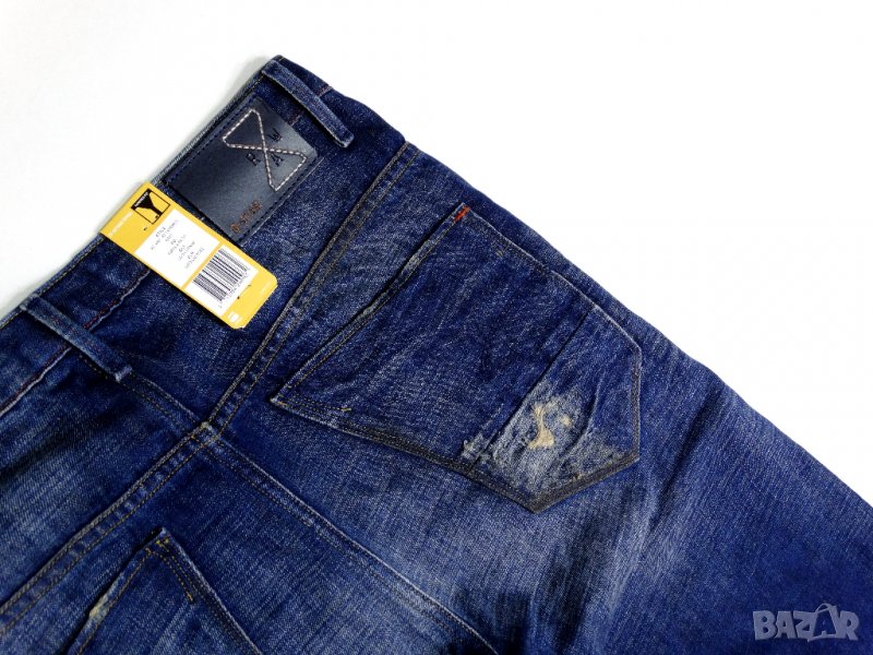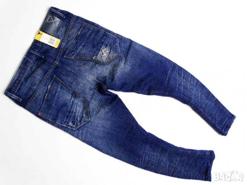 Нови с етикет. Дизайнерска лимитирана колекция ESSENTIALS. Отговарят на размер 26. Протъркани и състарени фабрично!!! Талия - 39см, ханш - 45см, дълбочина отпред - 25см, бедро до четал - 26см, коляно - 16,5см, подгъв - 15см, дължина отвън - 96см, дължина отвътре - 70см от 60% памук и 40% ЛЕН - без еластичност.