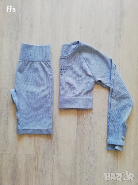 Фитнес клин, спортни стоки, спортен екип, спортен комплект, спортен сет, блуза с дълъг ръкав, къс клин. Висока талия.