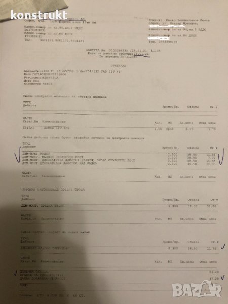 От фактурите можете да видите датата на сваляването им, цената на новите (първите цени са продажбите без ДДС, като от тях е извадена 10,6% отстъпка за корпоративен клиент) и цената на труда за демонтаж на старите!