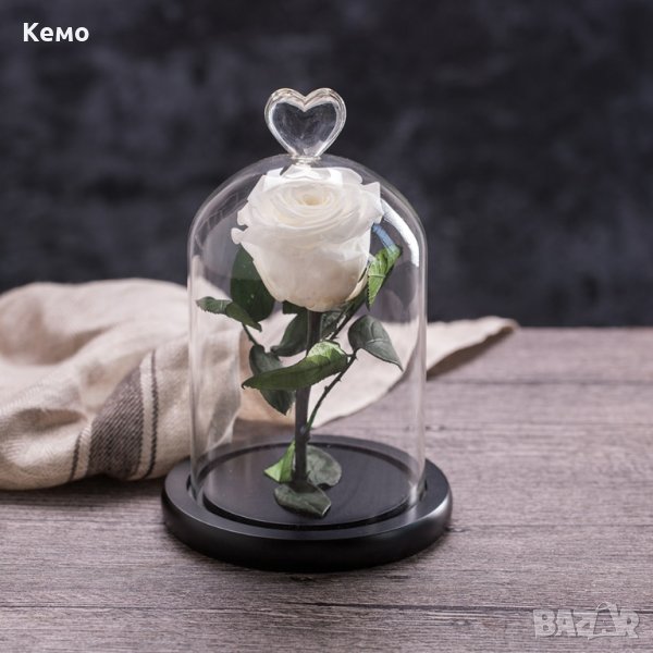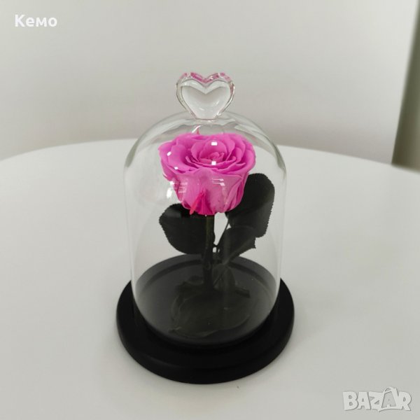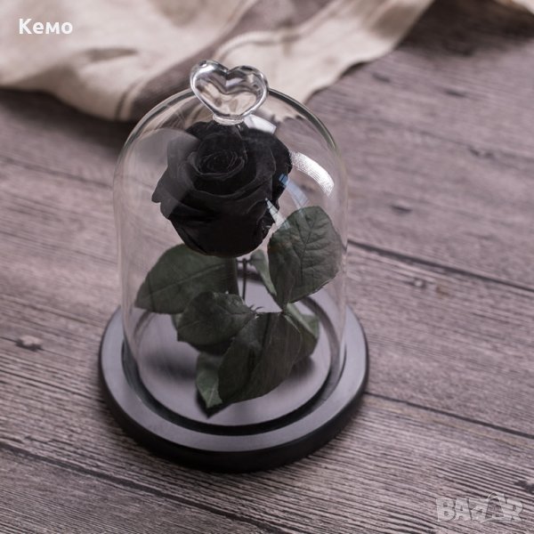 Стъкленицата е изключително крехка и нежна, а розата в стъкленица е изработена от висококачествена естествена роза, НЕ е фалшива, копринена или пластмасова. Неувяхваща цъфтяща роза, която стои неподвижна и готова да зарадва любим човек.