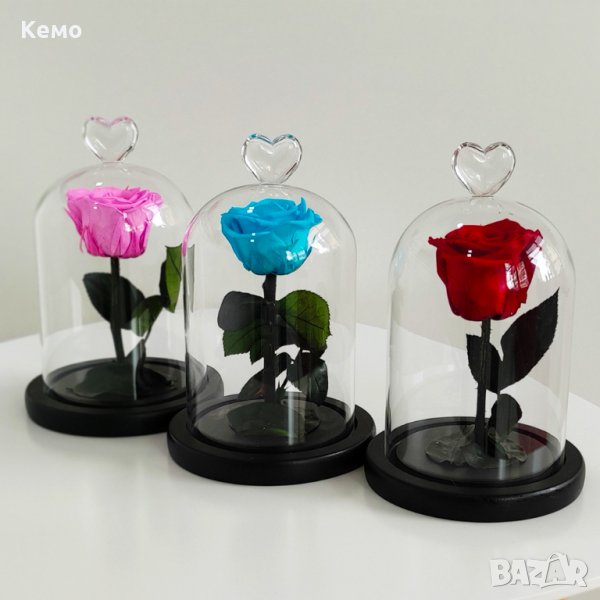Истинска роза в стъкленица е 100% естествена. Обработенa по специален метод за дехидратиране, която е неувяхваща и същевременно изглежда свежа сякаш току-що откъсната.
