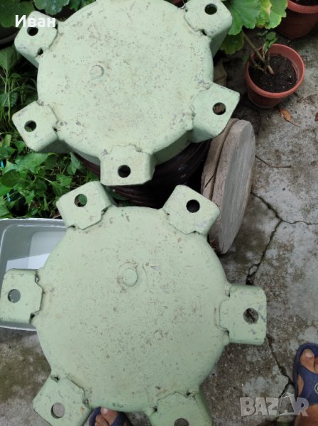 Масивни столчета за сядане. Не им влияе дъжд, слънце. При интерес и две железни масички. цена за бр.Столчетата са 53/34см.