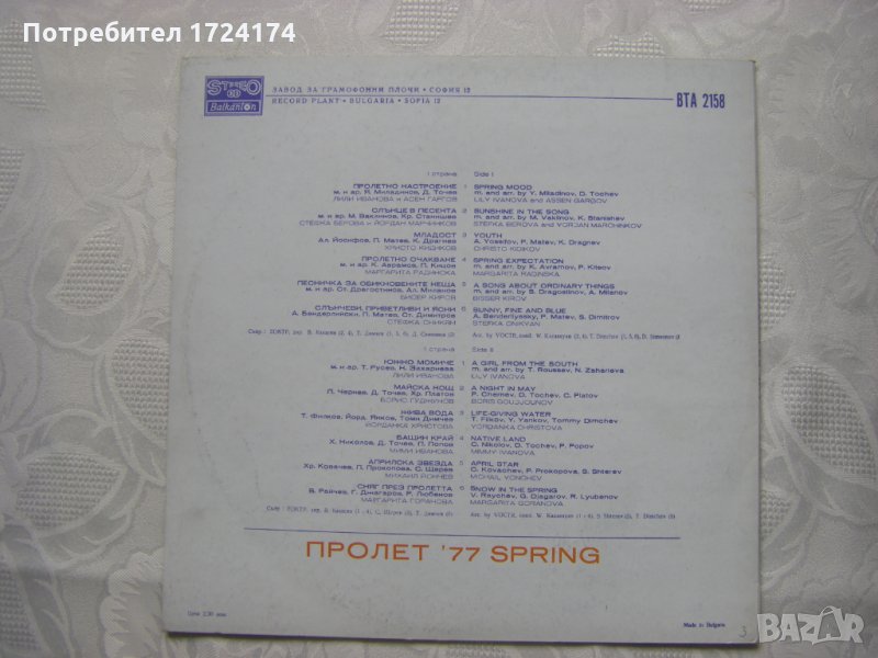 Грамофонна плоча - ВТА 2158 - Пролет '77