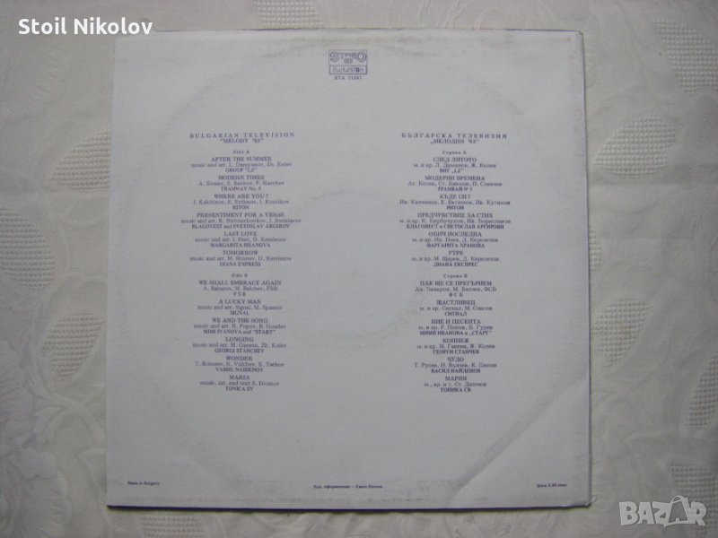 Грамофонна плоча - ВТА 11241 - Българска телевизия. Мелодия '83