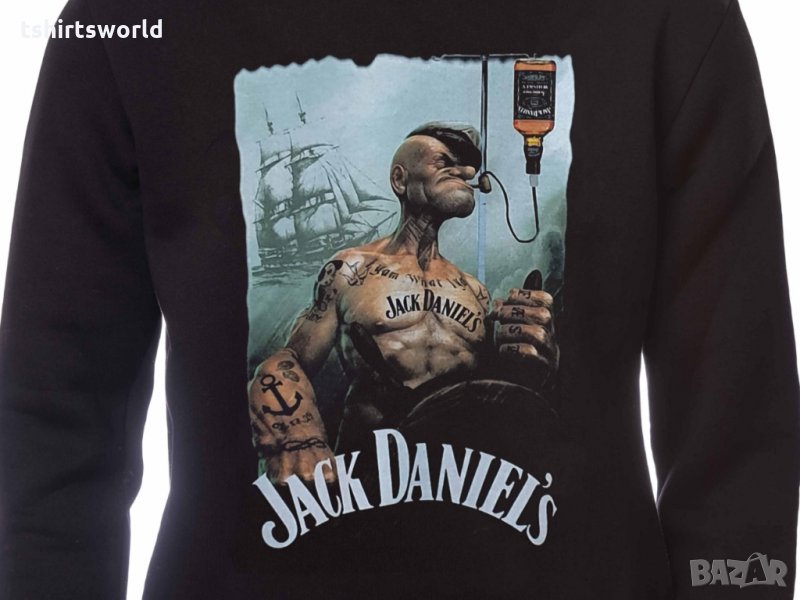 Нов мъжки суичър с дигитален печат Попай Моряка - Джак Даниелс