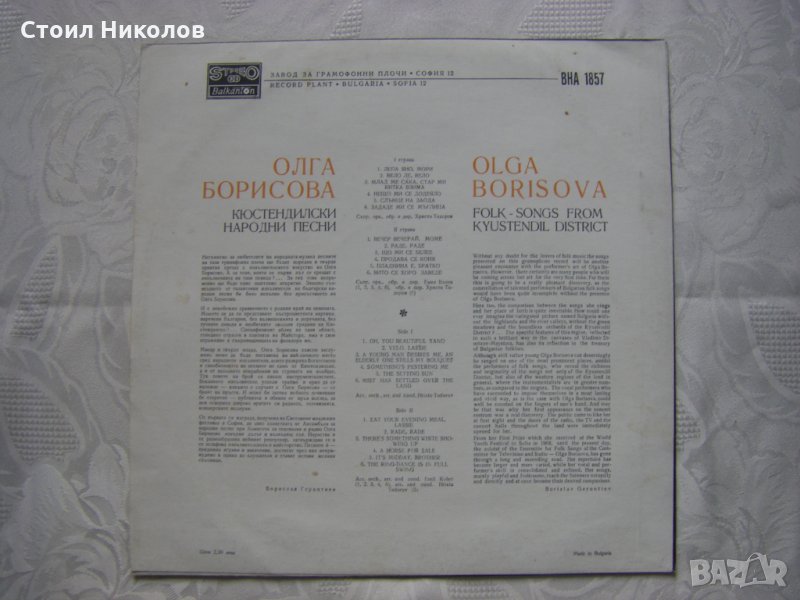Грамофонна плоча - ВНА 1857 - Олга Борисова. Кюстендилски народни песни