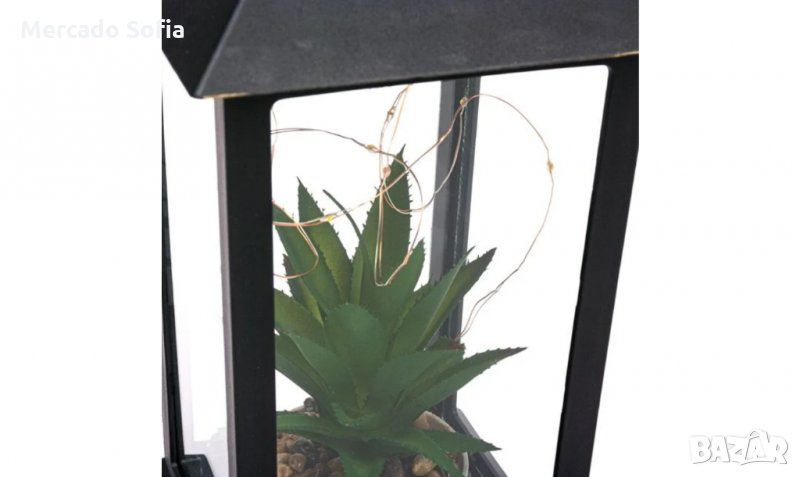 Декоративен фенер - Черен с алое и LED → Обява 31567809