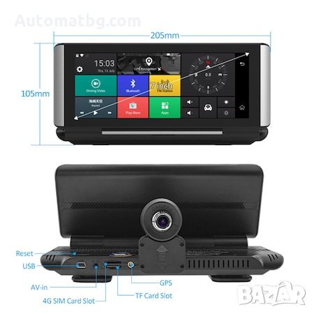Тип на интерфейса: USB порт / AV-IN порт / слот за TF карта / GPS порт / гнездо за SIM карта.
