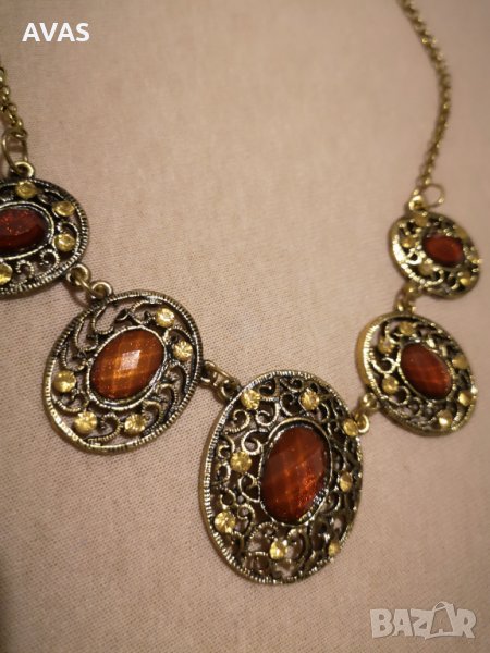Ново колие златисто и кафяво старинно, снимка 1 - Колиета, медальони, синджири - 31568918 Ново колие златисто и кафяво старинно, снимка 2 - Колиета, медальони, синджири - 31568918 1/2