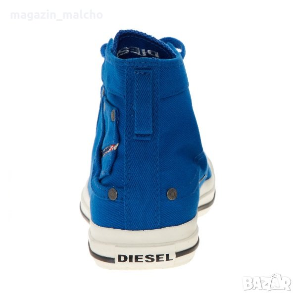 Кецовете на Diesel предлагат ежедневна визия, съчетана с текстилен дизайн в син цвят, омекотена стелка и закрепване с връзки.