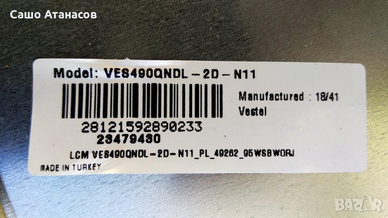 Back light LED: VESTEL 49" UHD DRT VNB B-TYPE REV0.1 - 2x15лв.
