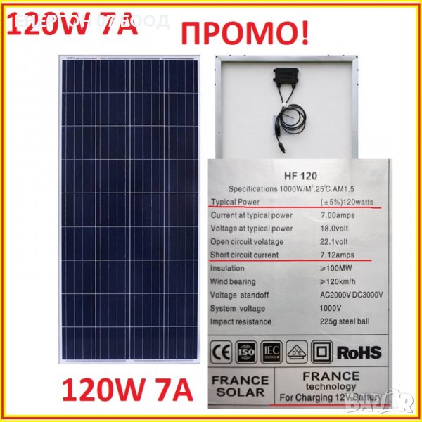 Реални 120 вата при 7.12А ток! Най високия клас поликристални клетки !