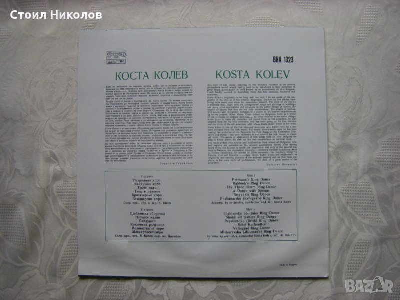 Грамофонна плоча - ВНА 1323 - Коста Колев - Хора и ръченици