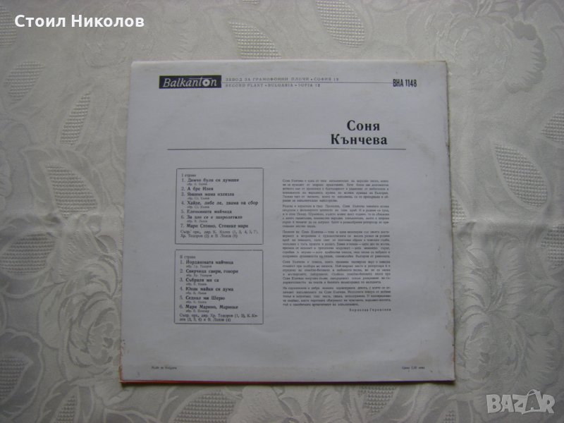 Грамофонна плоча - ВНА1148 - Народни песни в изпълнение на Соня Кънчева - Добруджански песни