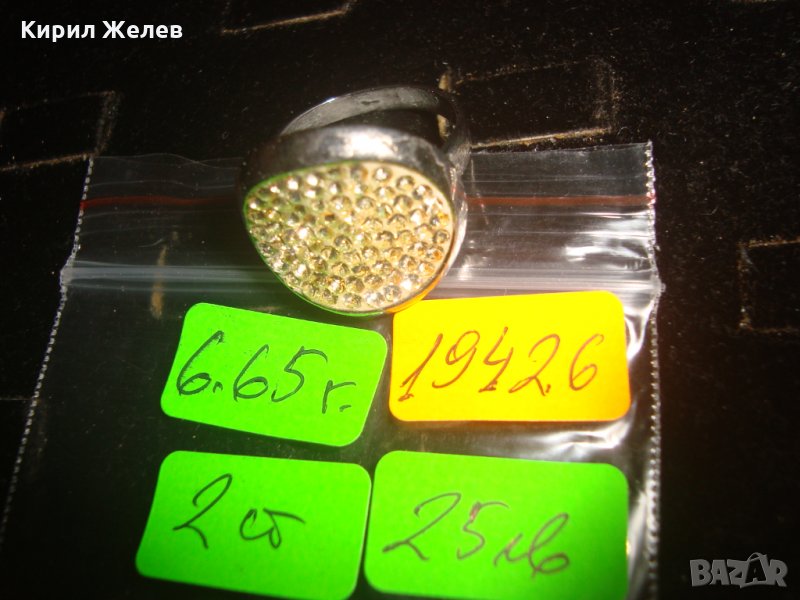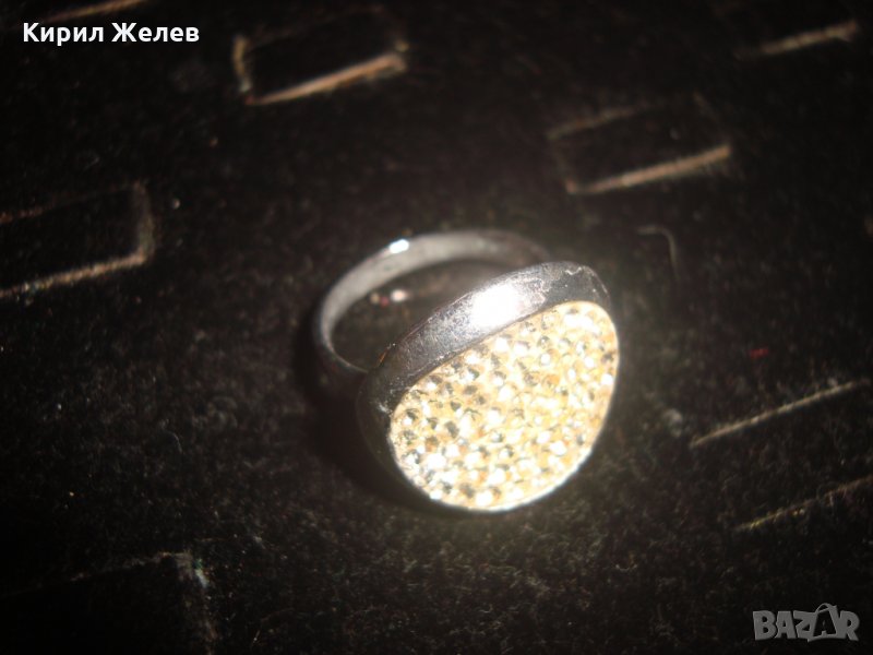 СТАР ВИНТИДЖ СРЕБЪРЕН ПРЪСТЕН с КРИСТАЛЧЕТА и БЯЛ ЕМАЙЛ 19426