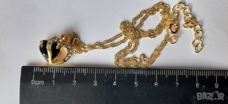 Колие с черен циркон, сърце, висулка с верижка, позлатено → Обява 31578832