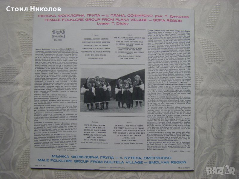 Севдалия, леле - изп. женска фолклорна група - с. Плана, Софийско, рък. Т. Джиджев